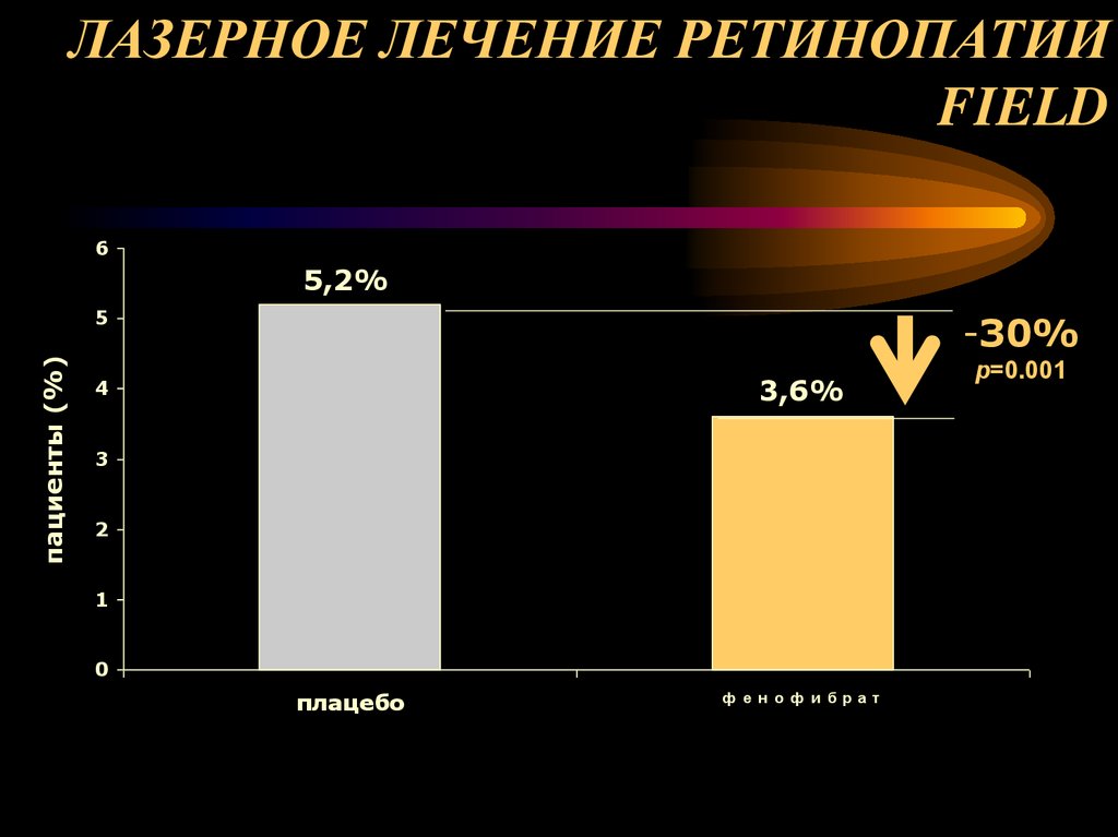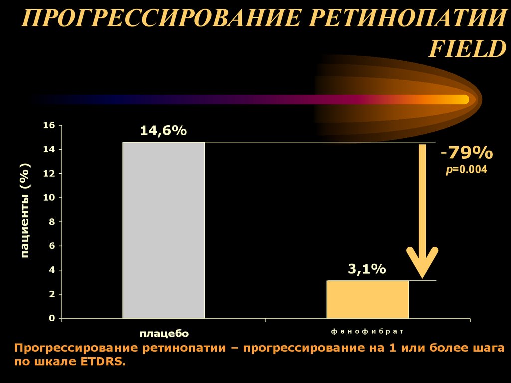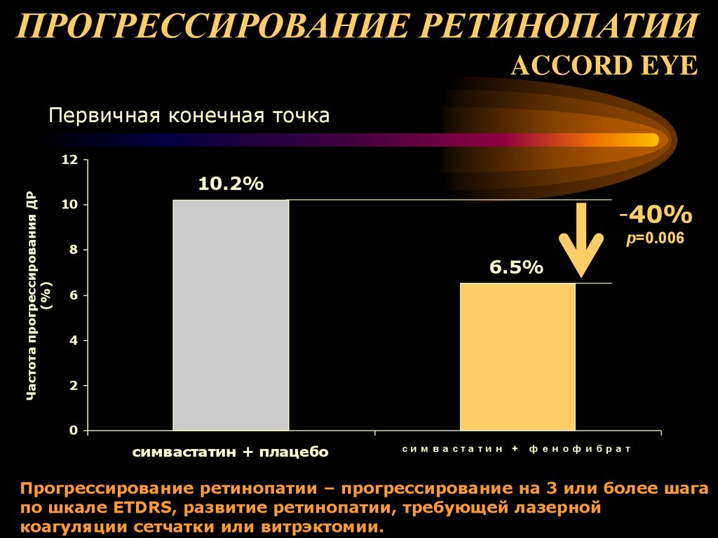 Применение фенофибрата достоверноснижает риск прогрессирования диабетических