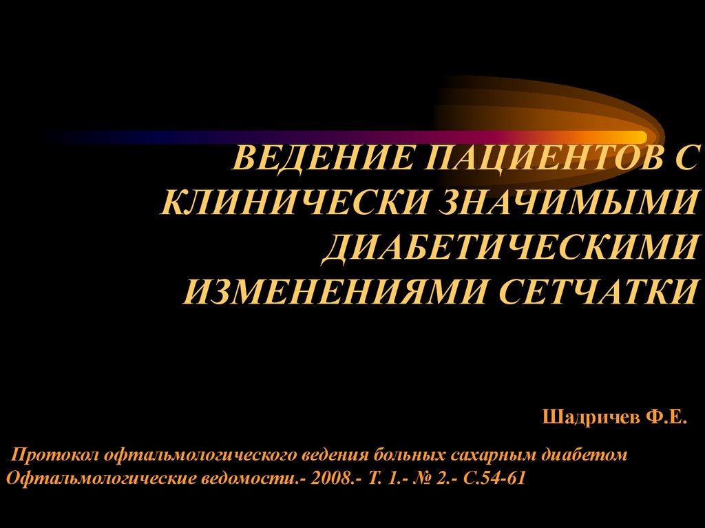 1. ДИАБЕТИЧЕСКАЯ РЕТИНОПАТИЯ СОВРЕМЕННАЯ ТАКТИКА ТЕРАПЕВТИЧЕСКОГО ЛЕЧЕНИЯ