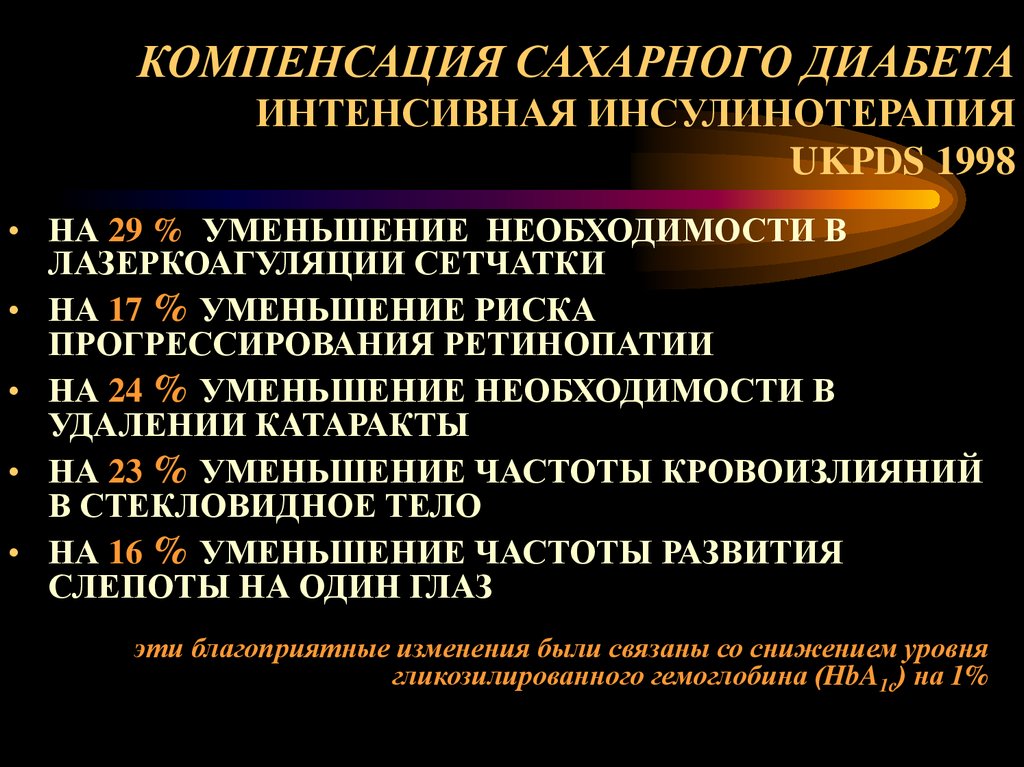 ДИАБЕТИЧЕСКАЯ РЕТИНОПАТИЯ ЯВЛЯЕТСЯ ОСНОВНОЙПРИЧИНОЙ СЛЕПОТЫ ВО ВСЕХ РАЗВИТЫХ СТРАНАХ