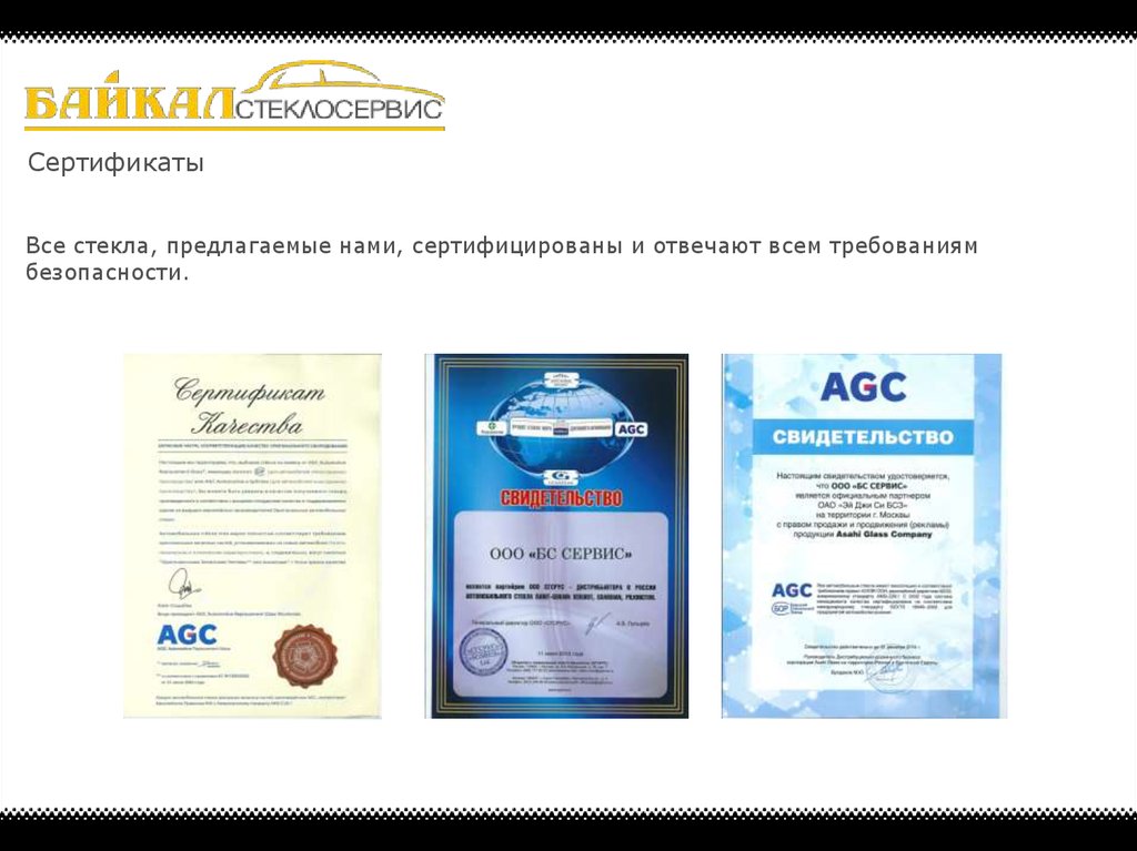 CертификатыВсе стекла, предлагаемые нами, сертифицированы и отвечают всем требованиям