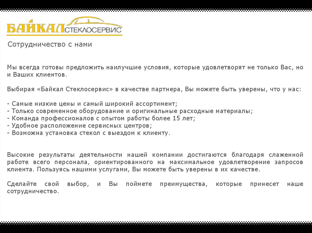 О компанииKомпания «Байкал Стеклосервис», основанная в 2005-м году, предоставляет полный