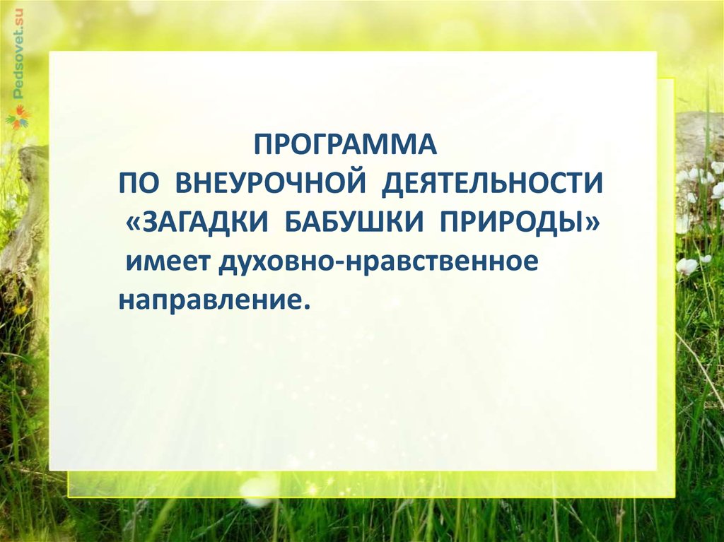 Аттестационная работа. «Загадки бабушки Природы». Внеурочная деятельность по экологии для начальной школы Нагорье 2017 г