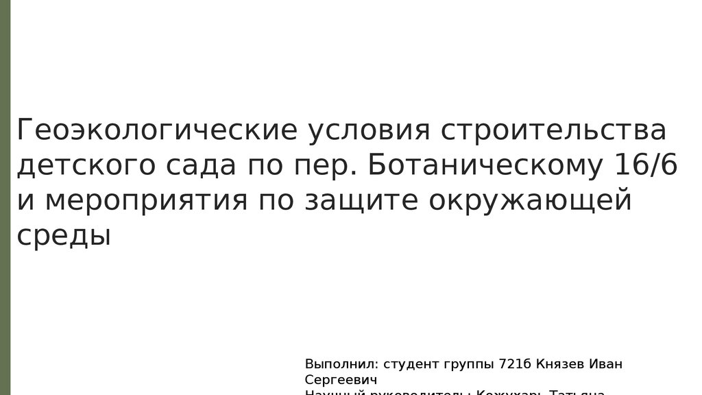 Геоэкологические условия строительствадетского сада по пер. Ботаническому 16/6