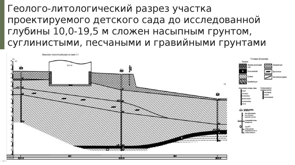 Геолого-литологический разрез участкапроектируемого детского сада до исследованной