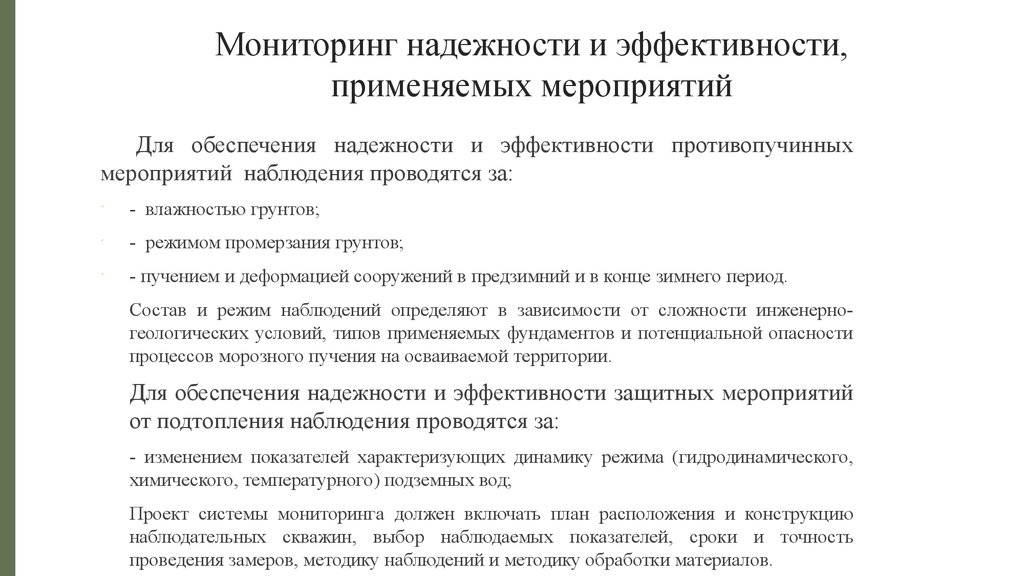 Мониторинг надежности и эффективности,применяемых мероприятий