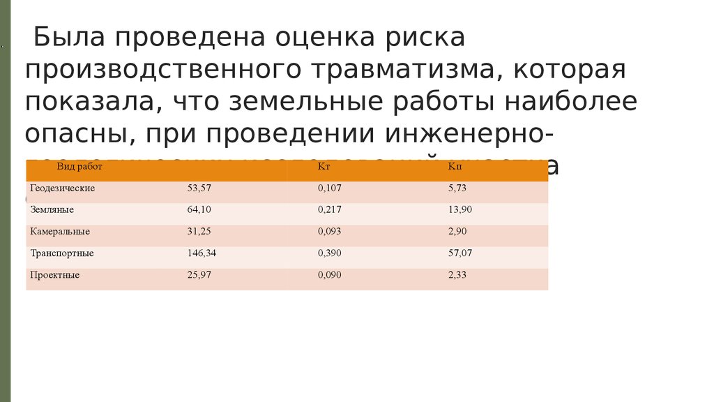 Была проведена оценка рискапроизводственного травматизма, которая
