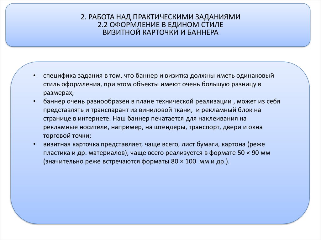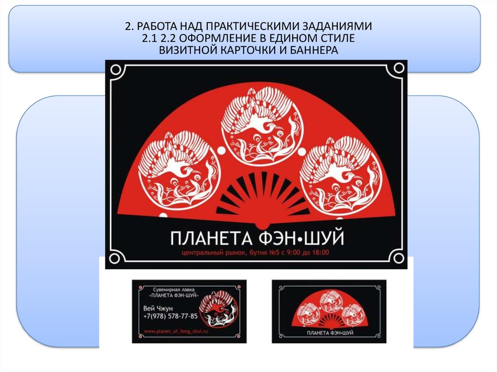 2. РАБОТА НАД ПРАКТИЧЕСКИМИ ЗАДАНИЯМИ2.1 2.2 ОФОРМЛЕНИЕ В ЕДИНОМ СТИЛЕ
