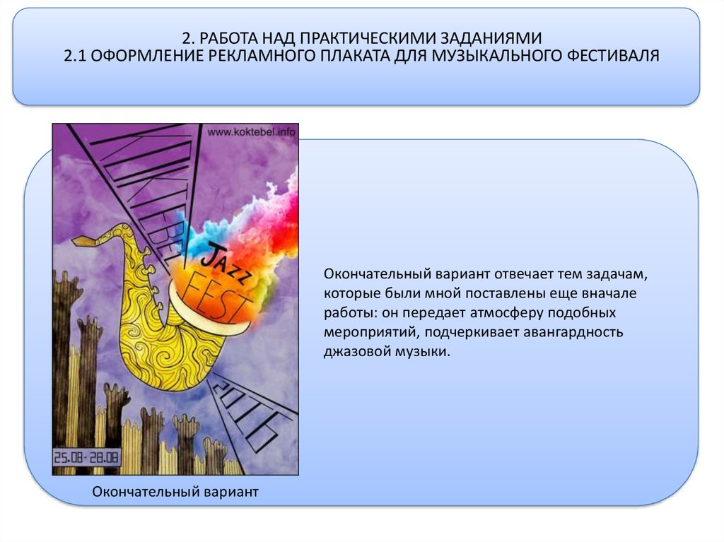 2. РАБОТА НАД ПРАКТИЧЕСКИМИ ЗАДАНИЯМИ2.1 ОФОРМЛЕНИЕ РЕКЛАМНОГО ПЛАКАТА ДЛЯ МУЗЫКАЛЬНОГО ФЕСТИВАЛЯ