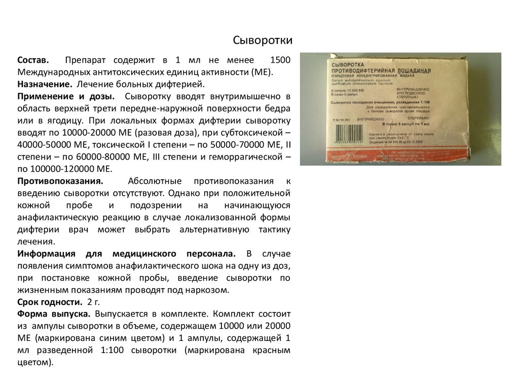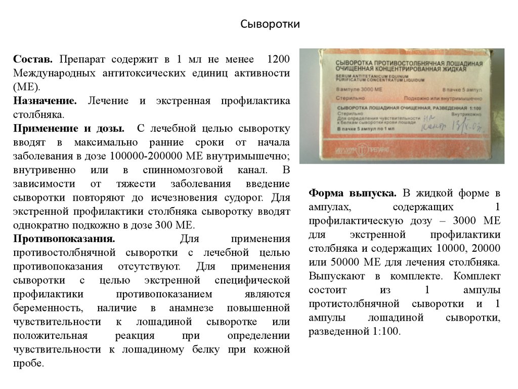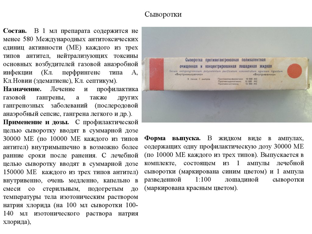 СывороткиСостав. В 1 мл препарата содержится не