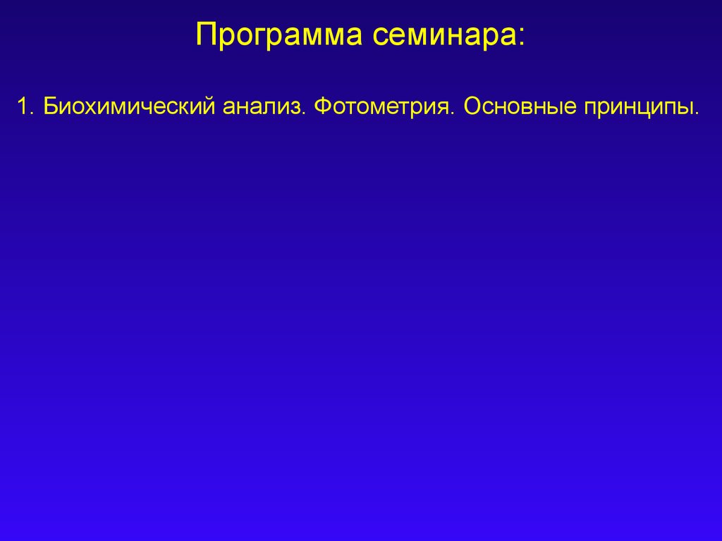 Программа семинара:1. Биохимический анализ. Фотометрия. Основные принципы.