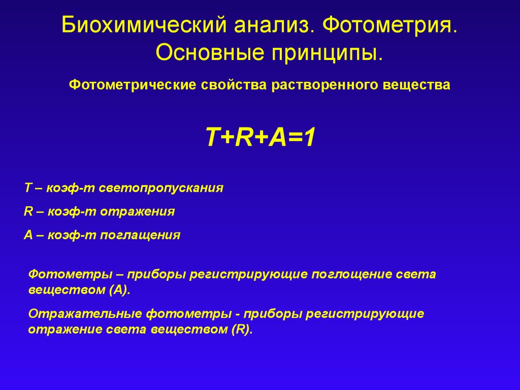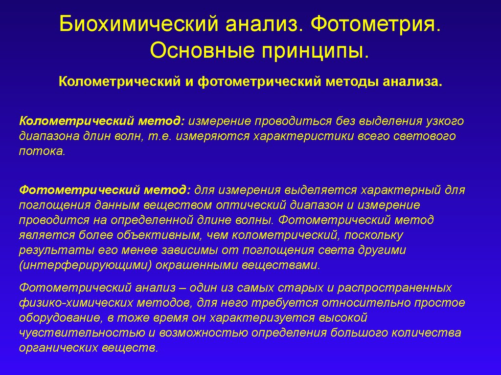 Биохимический анализ. Фотометрия.Основные принципы.