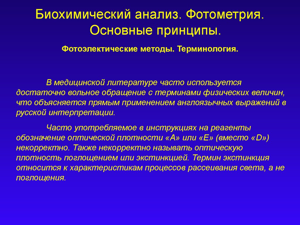 Биохимический анализ. Фотометрия. Основные принципы