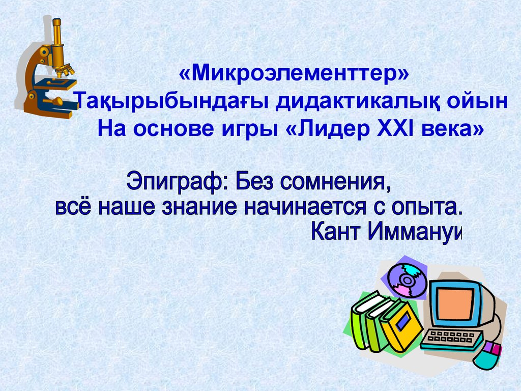 «Микроэлементтер»Тақырыбындағы дидактикалық ойын