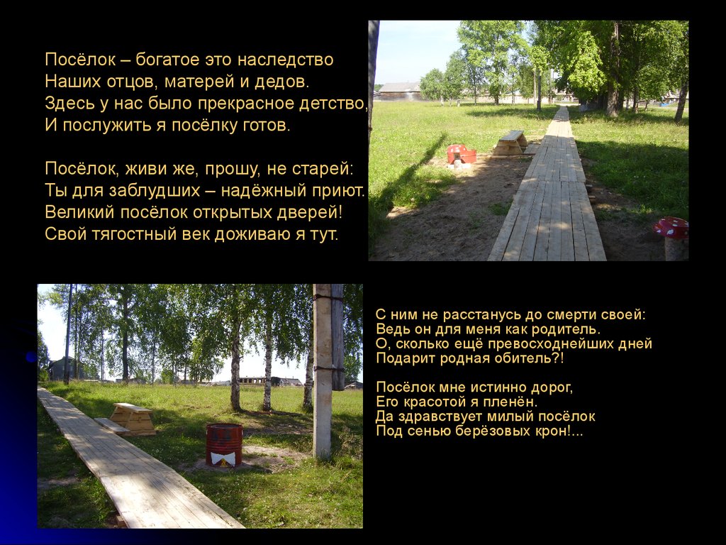 Посёлок – богатое это наследствоНаших отцов, матерей и дедов.