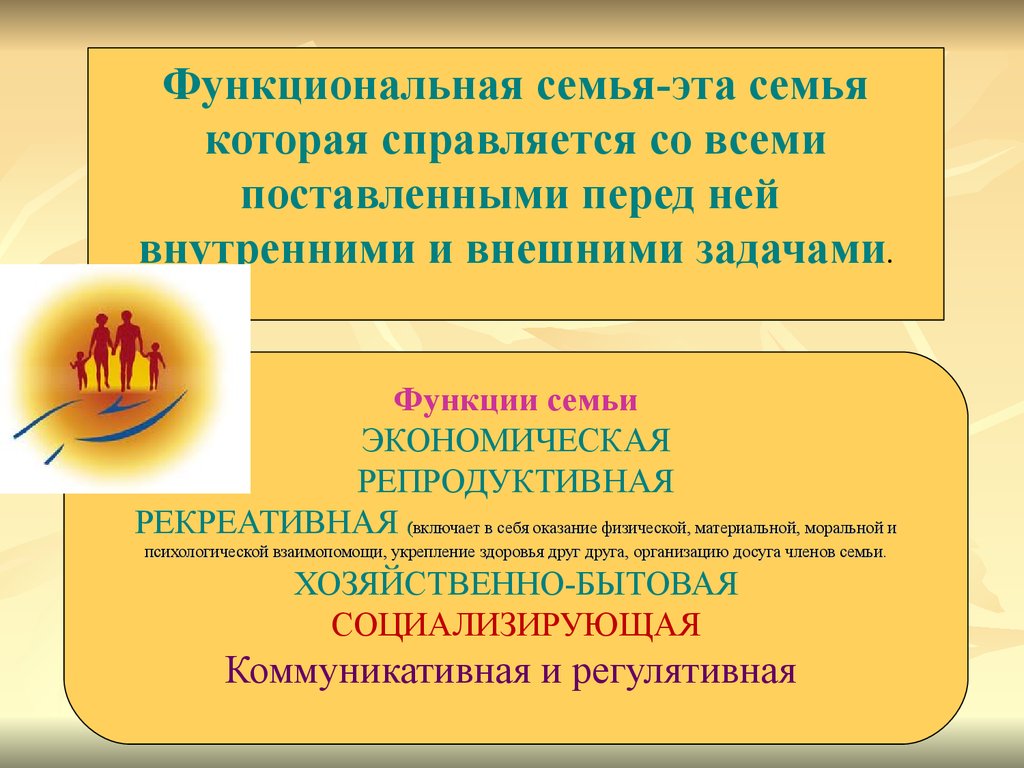 психологической взаимопомощи, укрепление здоровья друг друга, организацию досуга членов семьи.