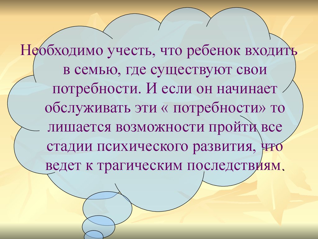 Необходимо учесть, что ребенок входитьв семью, где существуют свои