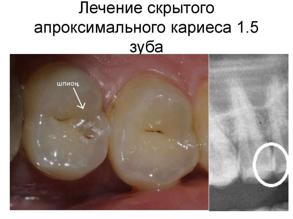 Лечение скрытого апроксимального кариеса 1.5 зуба