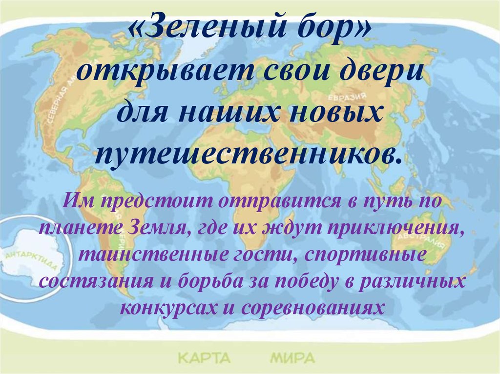 1. «Зеленый бор» открывает свои двери для наших новых путешественников.