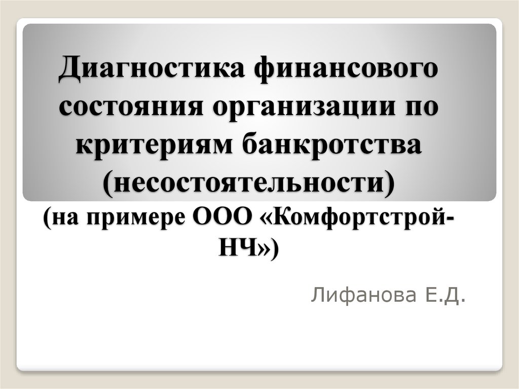1. Диагностика финансового состояния организации по критериям банкротства (несостоятельности) (на примере ООО «Комфортстрой-НЧ»)