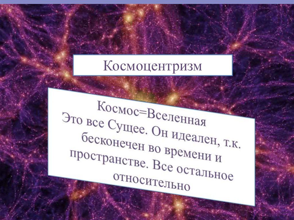 Космоцентризм- философскаяконцепция и мировоззрение, в
