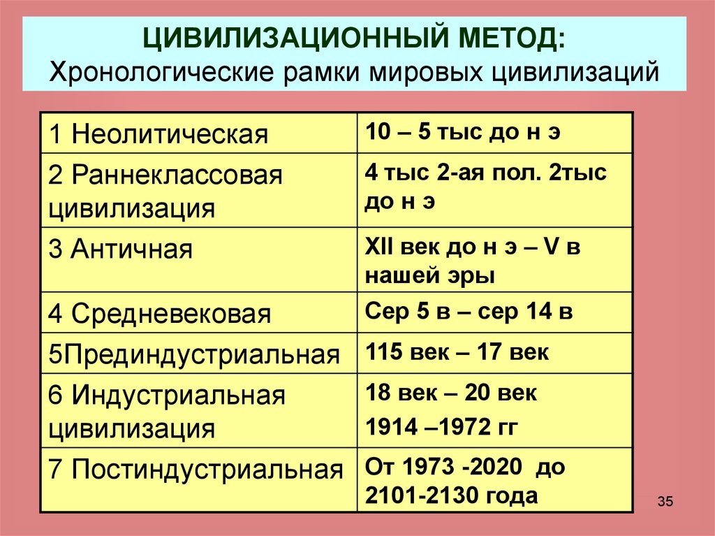 ЦИВИЛИЗАЦИОННЫЙ МЕТОД:Хронологические рамки мировых цивилизаций