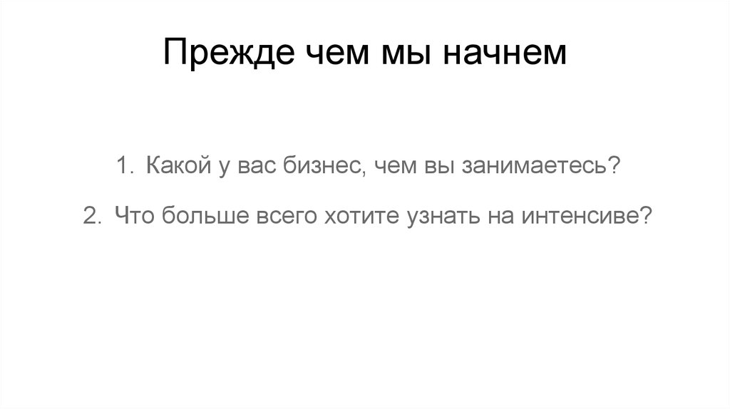 Прежде чем мы начнем1. Какой у вас бизнес, чем вы занимаетесь?