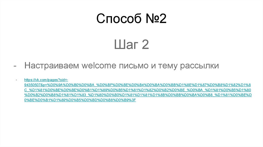 - Настраиваем welcome письмо и тему рассылки