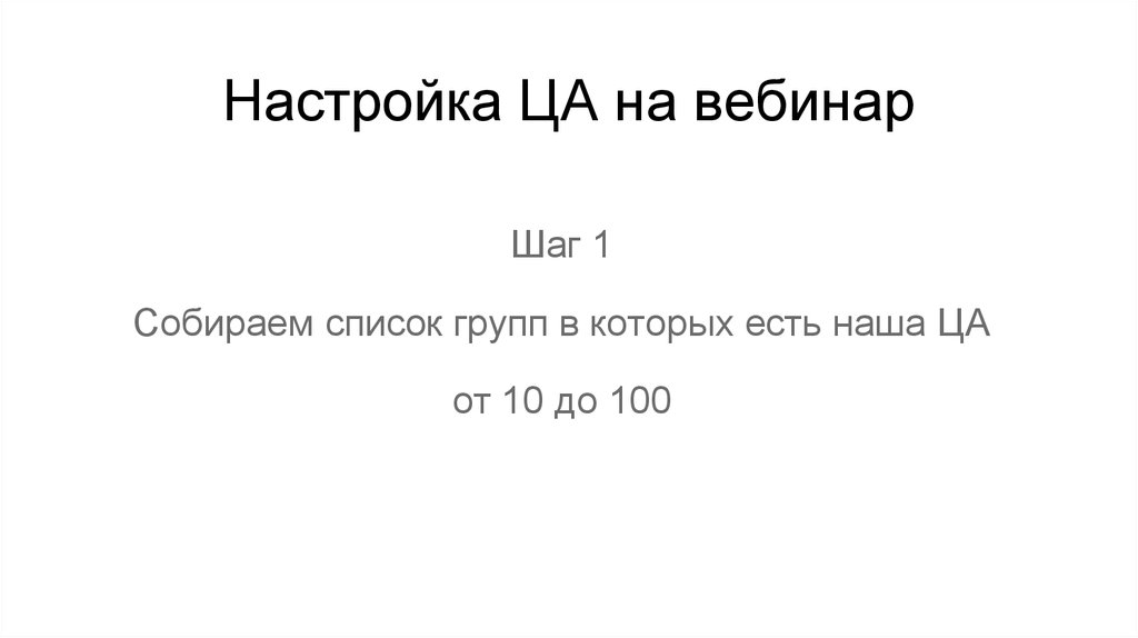 Настройка ЦА на вебинарШаг 1