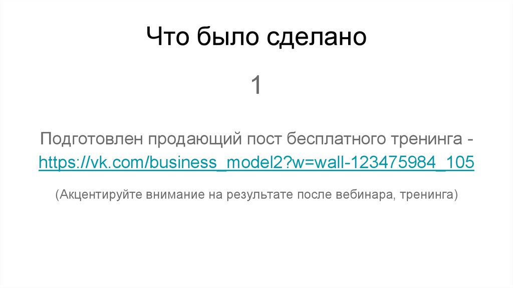 Подготовлен продающий пост бесплатного тренинга https://vk.com/business_model2?w=wall-123475984_105