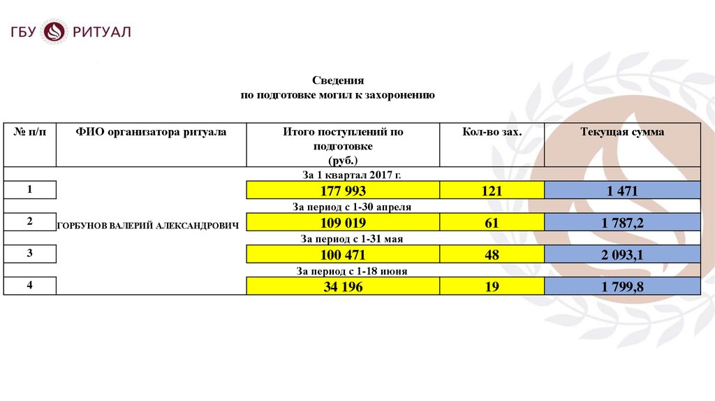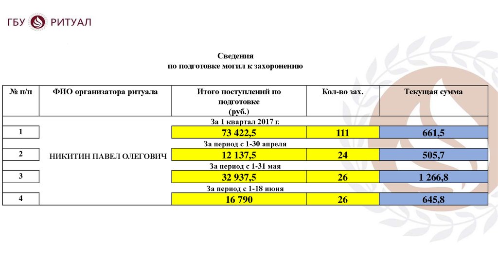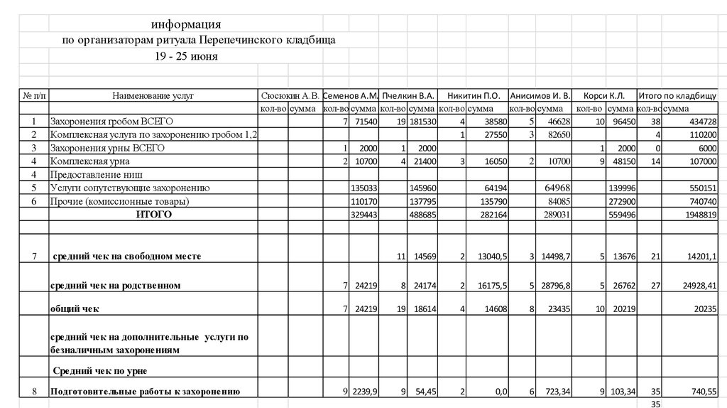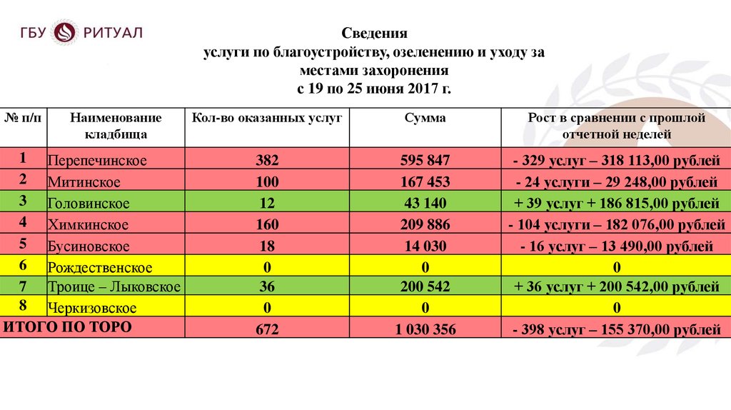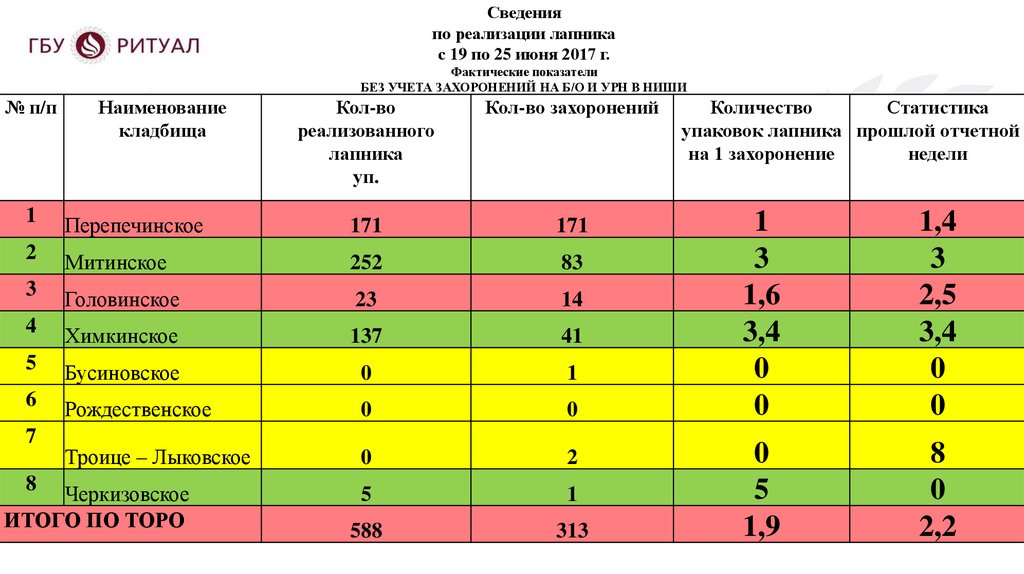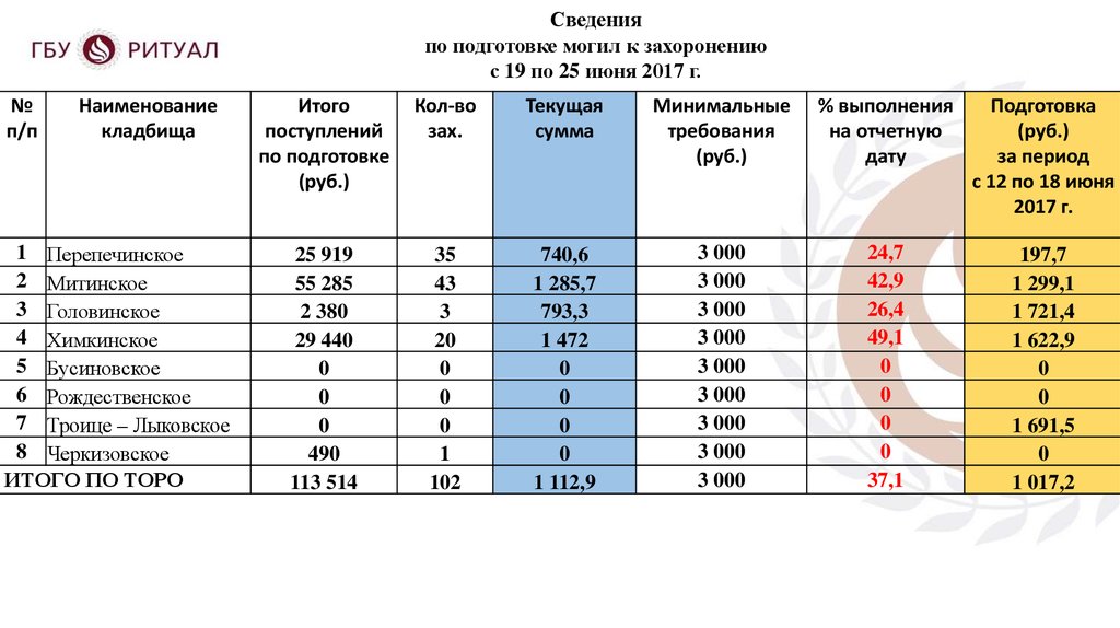 Доклад организатора ритуалаПерепечинского кладбища