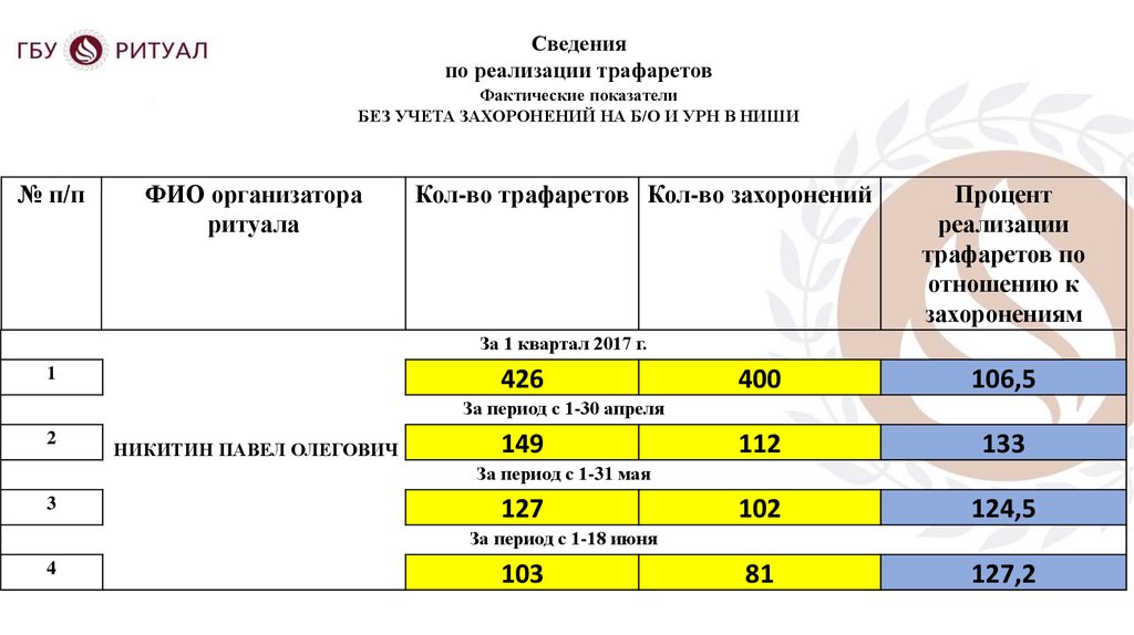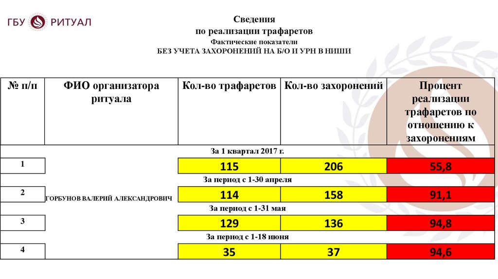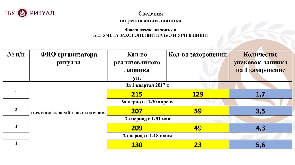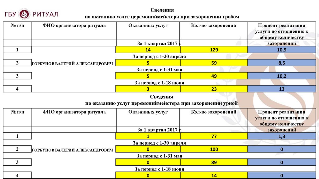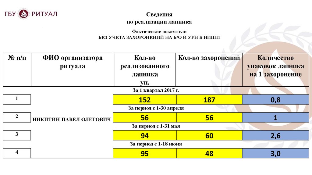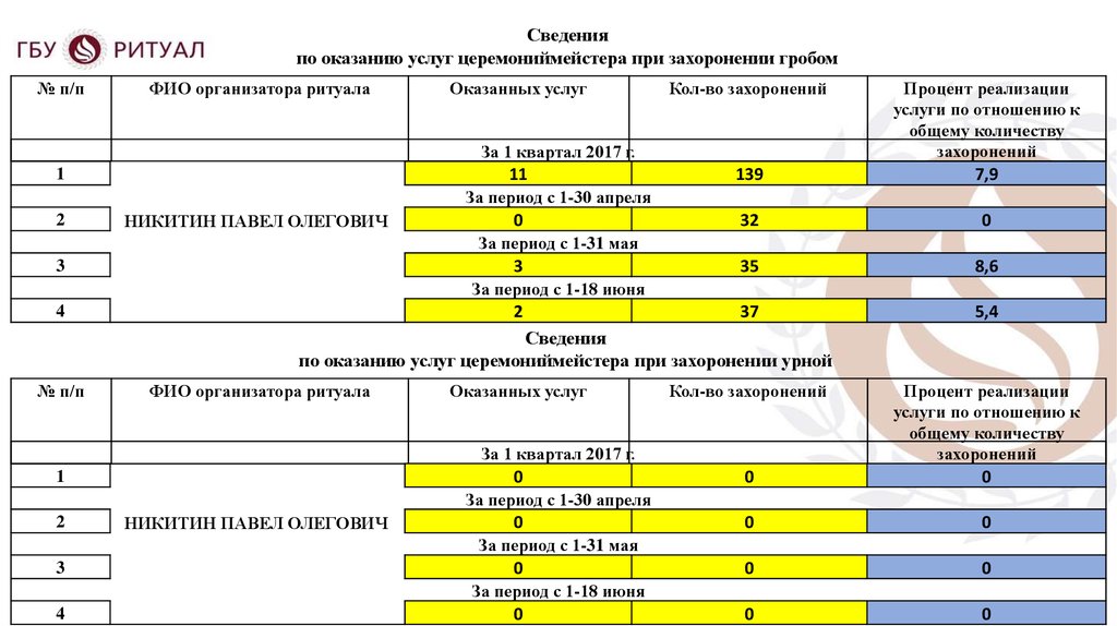 Доклад организатора ритуалаПерепечинского кладбища
