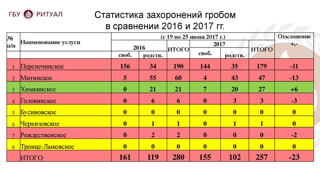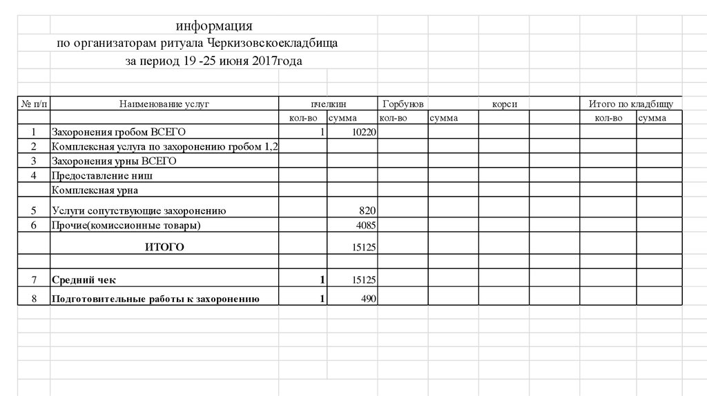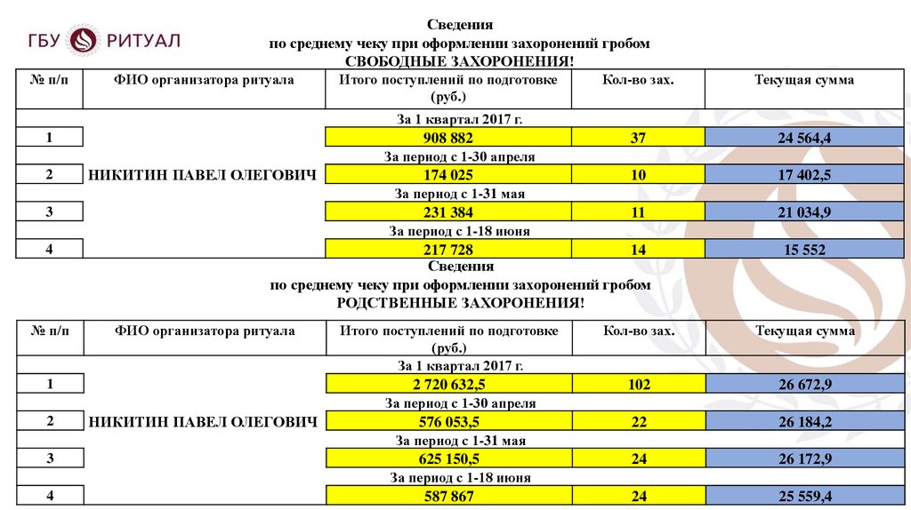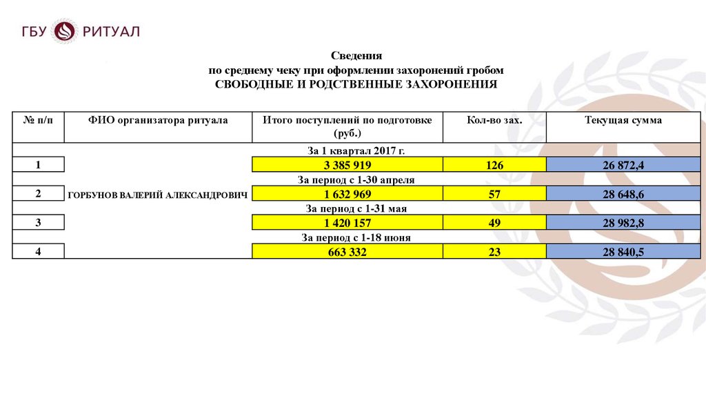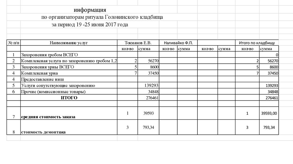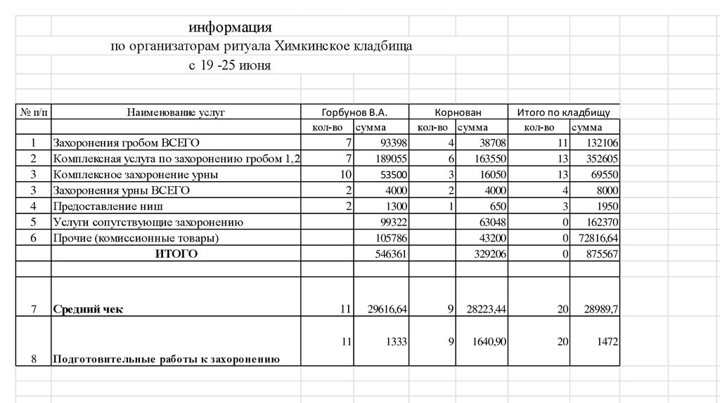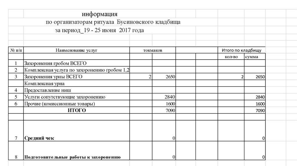 по среднему чеку при оформлении захоронений гробом