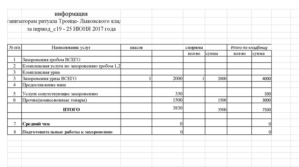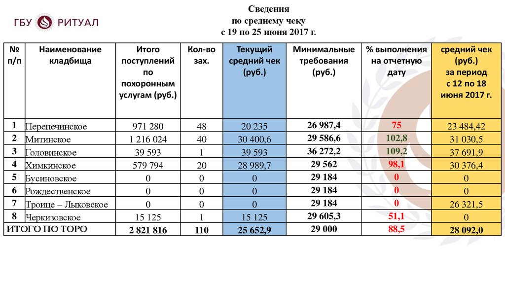Сведенияпо среднему чеку при оформлении захоронений гробом