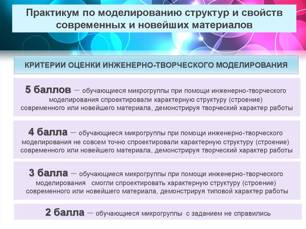 5 баллов – обучающиеся микрогруппы при помощи инженерно-творческого