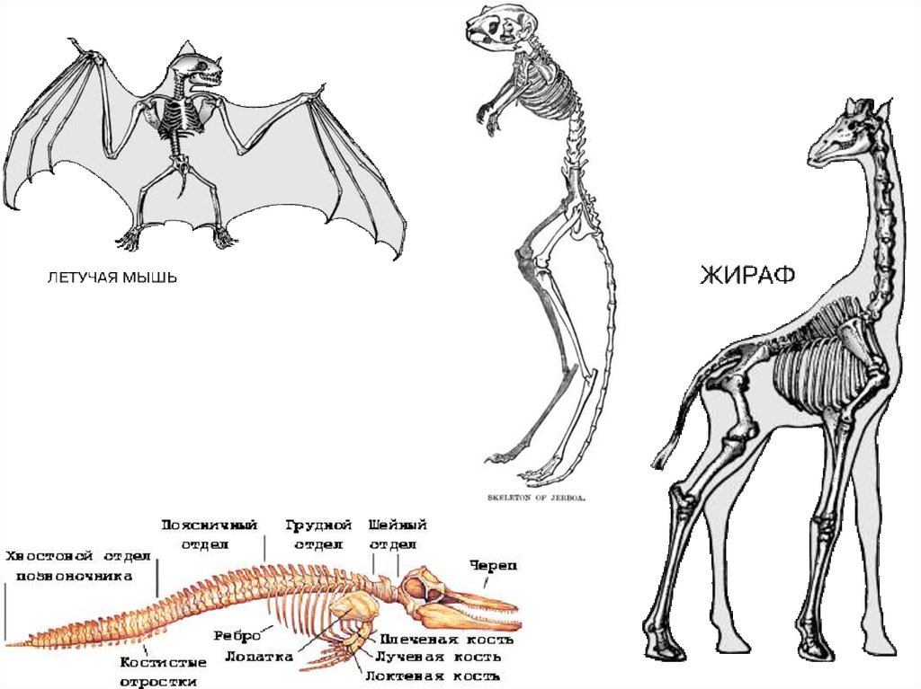 Скелет млекопитающего:1 — череп; 2 — нижняя челюсть; 3 — шейные позвонки;
