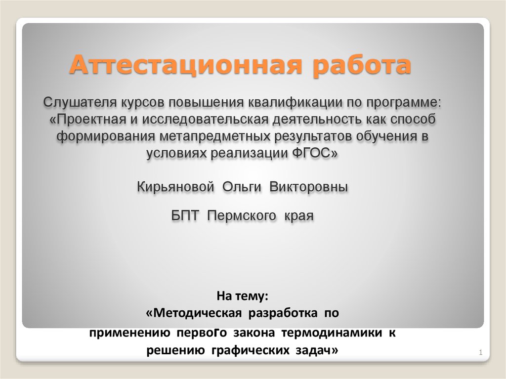 Аттестационная работа. Методическая разработка по применению первого закона термодинамики к решению графических задач