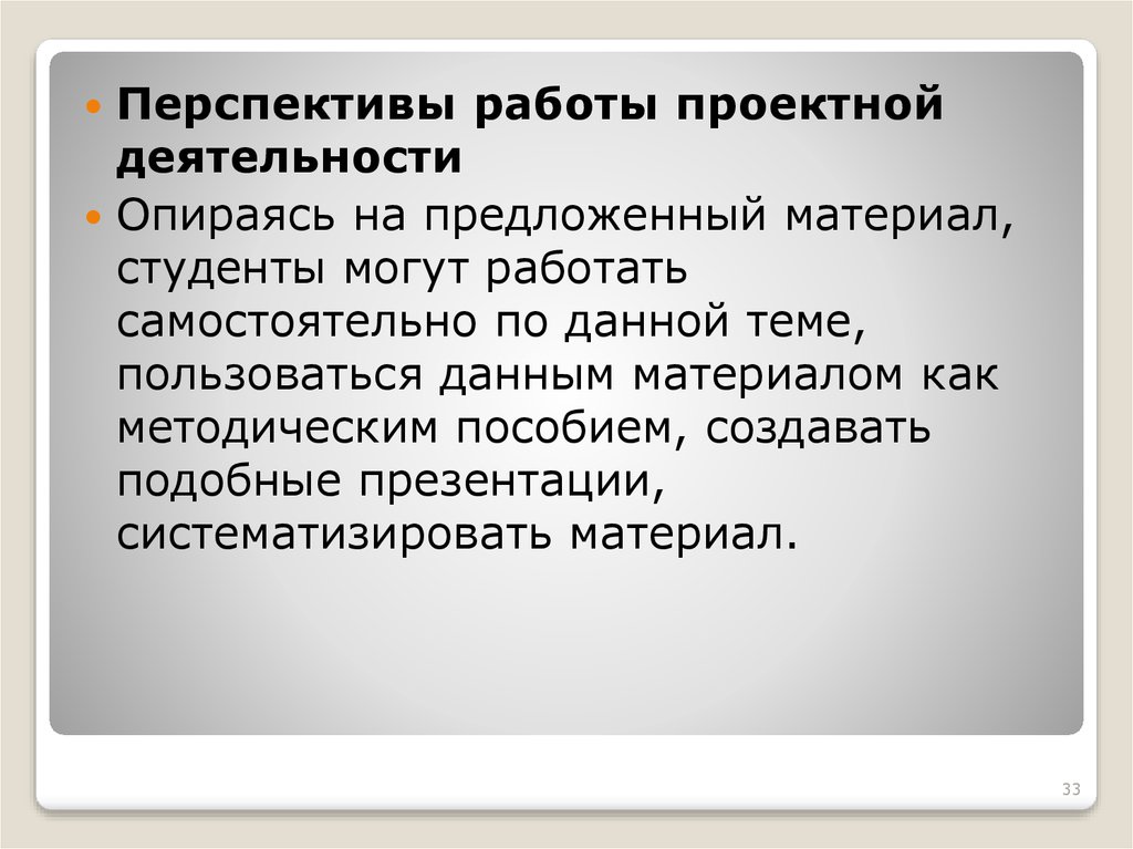 Данный проект позволит показать студентамзаочного отделения значимость изучения темы