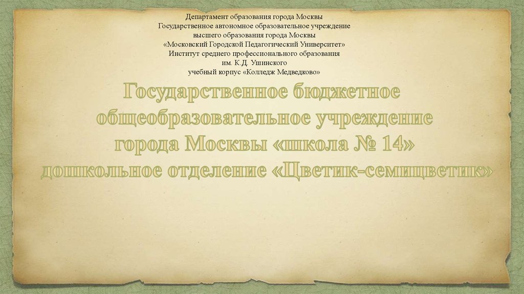 Государственное бюджетное общеобразовательное учреждение г. Мосвы дошкольное отделение "Цветик-семицветик"