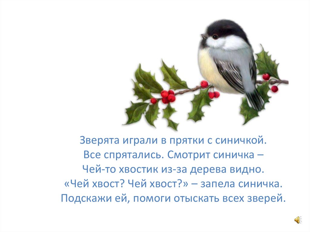 Зверята играли в прятки с синичкой.Все спрятались. Смотрит синичка –
