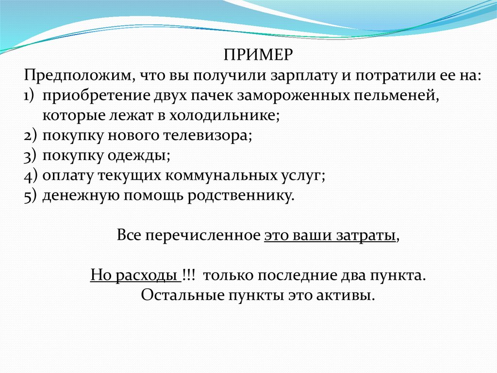 ПРИМЕРПредположим, что вы получили зарплату и потратили ее на: