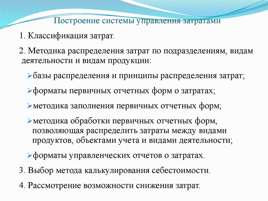 Построение системы управления затратами1. Классификация затрат.