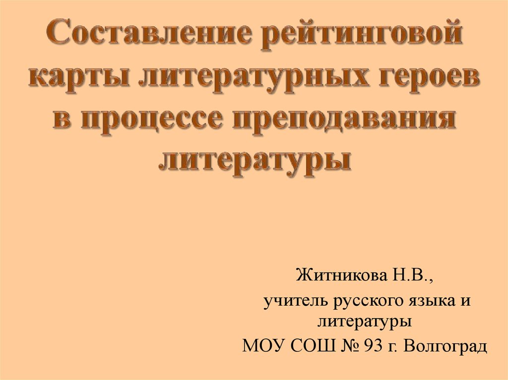 Составление рейтинговой карты литературных героев в процессе преподавания литературы