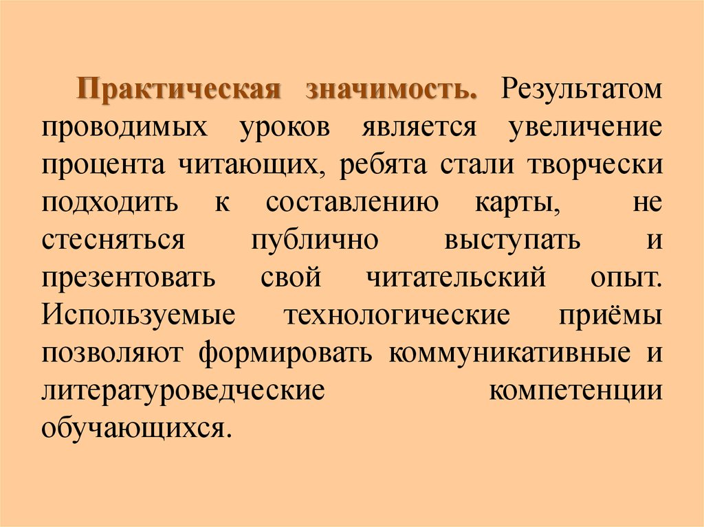 Практическая значимость. Результатомпроводимых уроков является увеличение