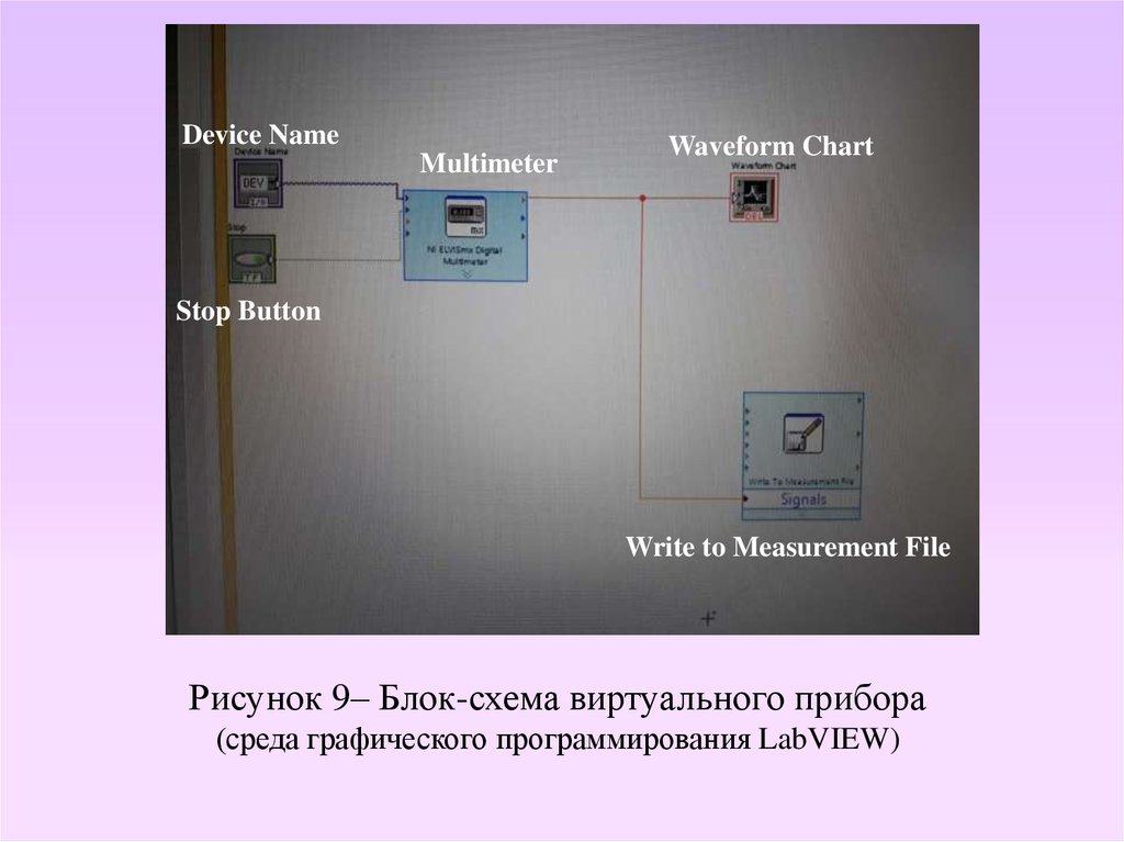 (в) Интерфейс в программе LabVIEW для измерения и обработки сигналов