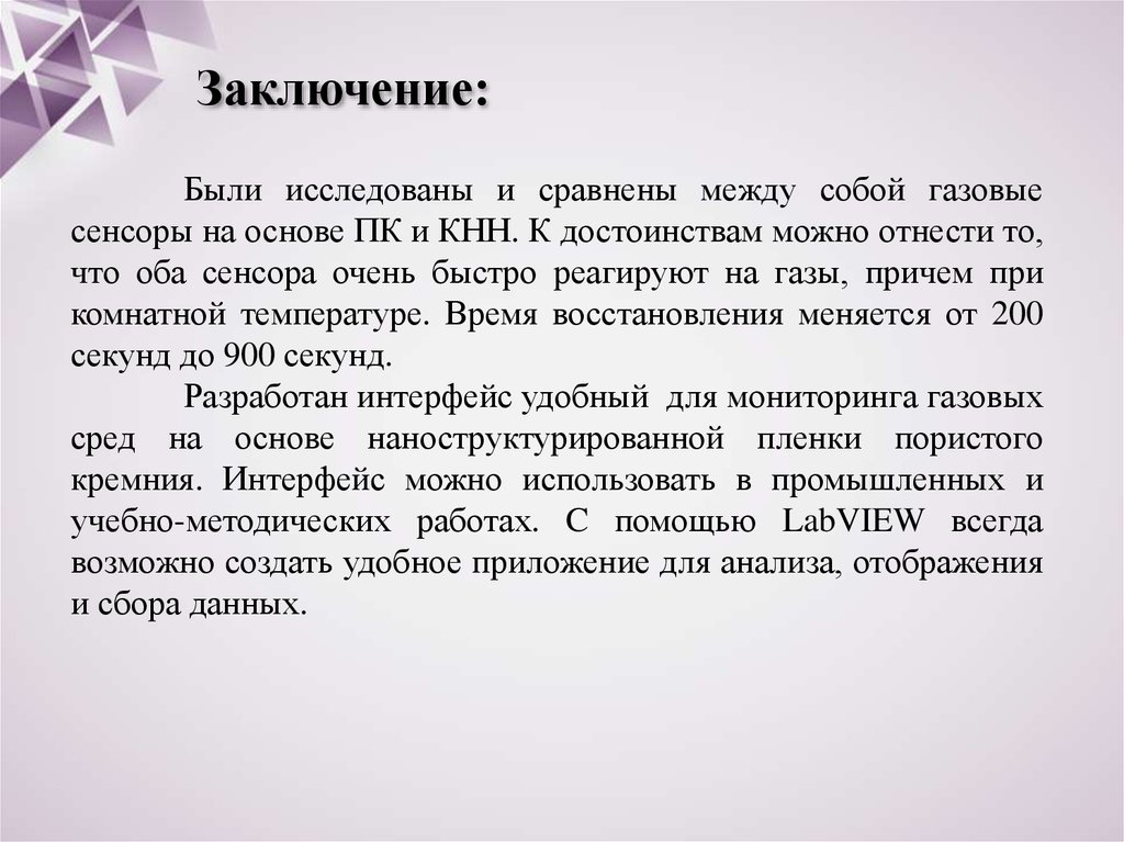 Создание измерительного комплекса для мониторинга газовых сред на основе наноструктурированных полупроводниковых пленок