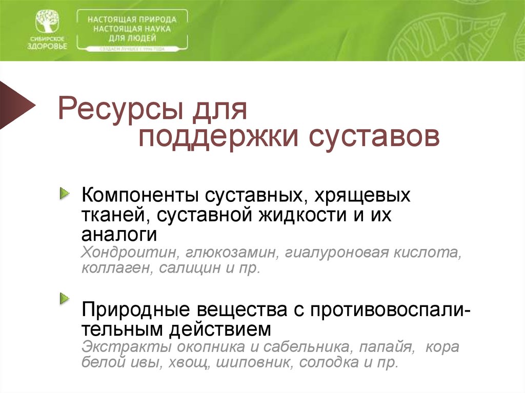Активные растительные ингредиентыХондроитина сульфат и глюкозамина гидрохлорид в
