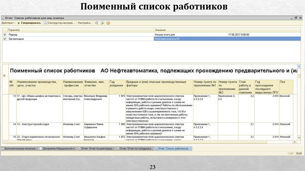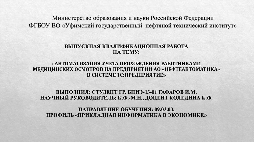 Автоматизация учета прохождения работниками медицинских осмотров на предприятии АО «Нефтеавтоматика» в системе 1с:предприятие