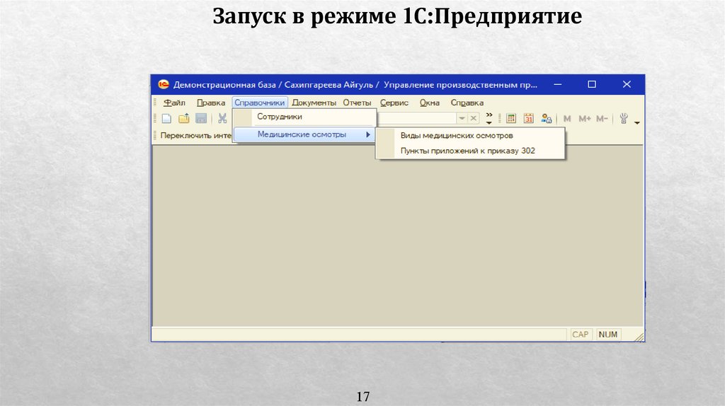 Запуск в режиме 1С:Предприятие17