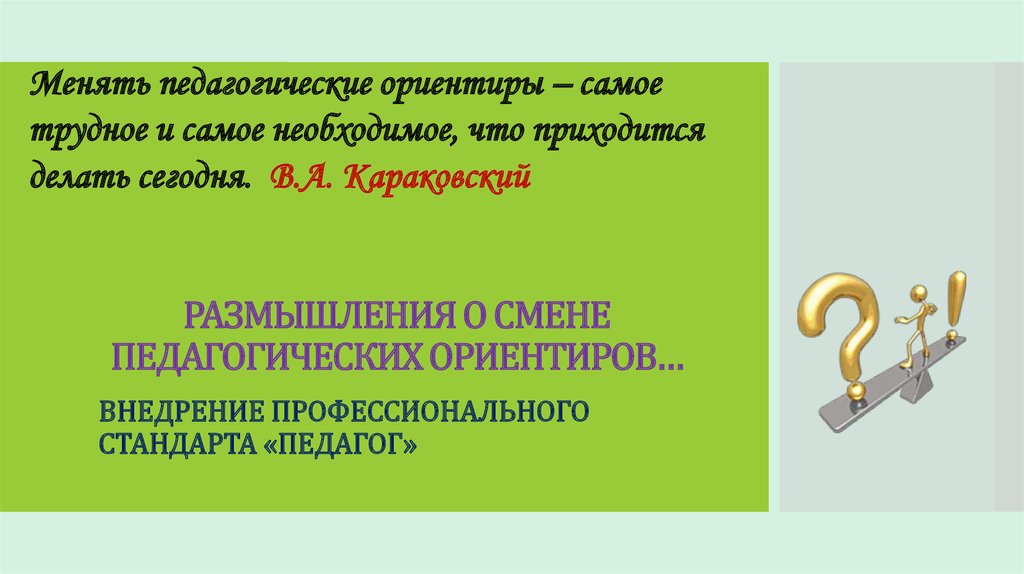 Менять педагогические ориентиры – самоетрудное и самое необходимое, что приходится