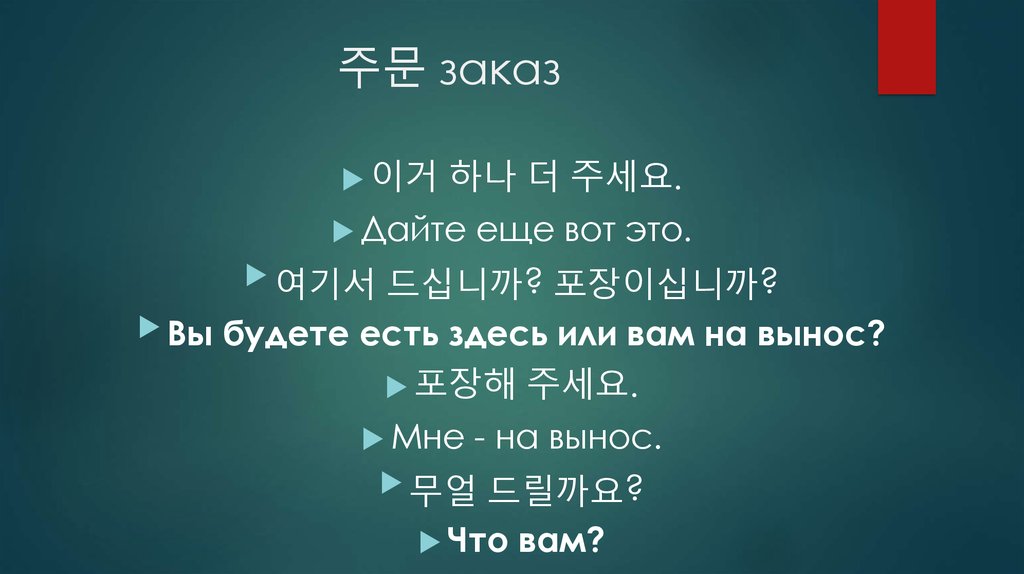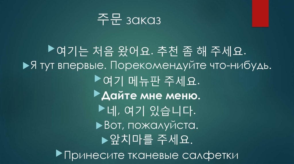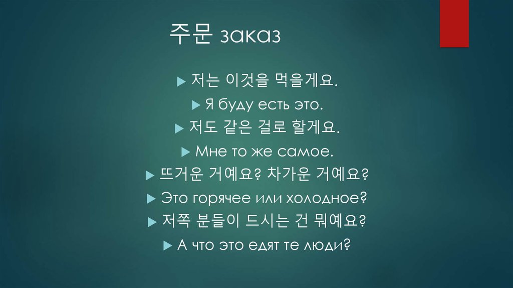 주문 заказ매운 것을 잘 못 먹어요. 이건 맵지 않죠?